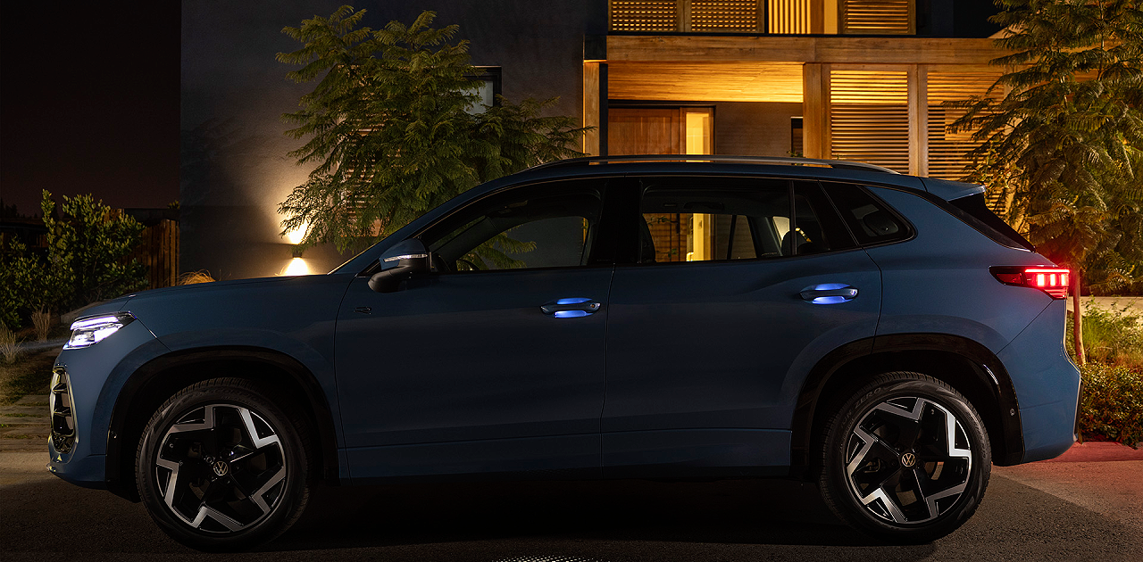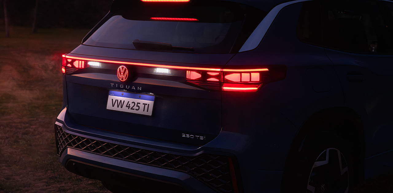 El diseño renovado de Nuevo Tiguan se caracteriza por combinar con un perfecto equilibrio la robustez y la elegancia. Acompañan los elementos R-Line y su emblema en la parrilla frontal y laterales para resaltar su look deportivo y elegante. La luz delantera en color blanco y la luz trasera en color rojo, ambas con el logo VW iluminado, junto a la luz ambiental con proyección del logo VW en piso crean una presencia imponente.