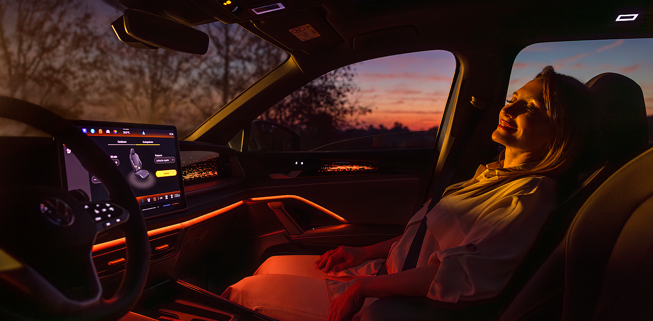 Viví experiencias únicas en el interior del Nuevo Tiguan. Utilizá la función de masaje mientras estás al volante y disfrutá de sus 8 funciones que podés configurar desde la pantalla táctil.