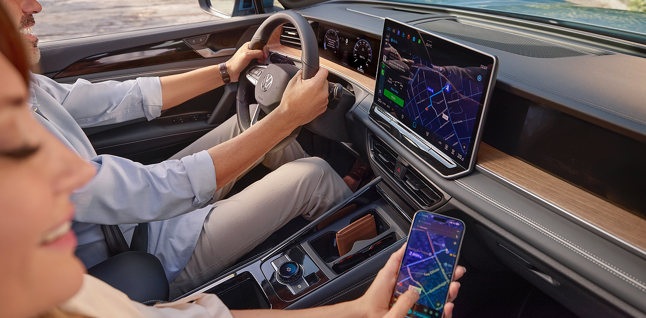 ¡No te quedes sin batería! Con Nuevo Tiguan podés cargar los celulares durante el viaje sin necesidad de cables, gracias al cargador inalámbrico para smartphone.